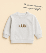 Onze comfortabele gepersonaliseerde sweater licht grijs is een schattige toevoeging aan de garderobe van jouw kleintje. Heerlijk zacht, makkelijk te dragen en met oog voor detail gemaakt. Perfect voor ouders die comfort en stijl willen combineren in kinderkleding.